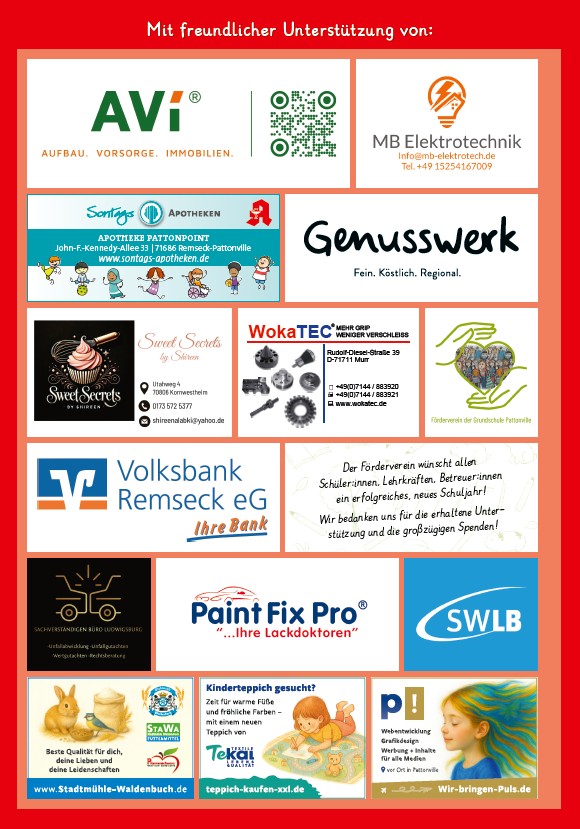 Wir danken ganz herzlich allen Sponsoren, die uns einen Druckkostenzuschuss gewährt haben – und unserem Förderverein, der diese eingeworben hat: